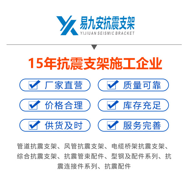 易九安抗震支架科技是專業(yè)為建筑機(jī)電工程中水、電、氣、風(fēng)等管線設(shè)備的抗震支吊架、裝配式成品支吊架進(jìn)行研發(fā),優(yōu)化設(shè)計(jì)、生產(chǎn)制造、銷售服務(wù),施工安裝及現(xiàn)場(chǎng)安裝指導(dǎo)為一體的一家現(xiàn)代化企業(yè),我們的宗旨是“以質(zhì)量求生存、以信譽(yù)求發(fā)展、以服務(wù)求效益”,嚴(yán)格按照標(biāo)準(zhǔn)和用戶需求服務(wù)的發(fā)展型企業(yè)。